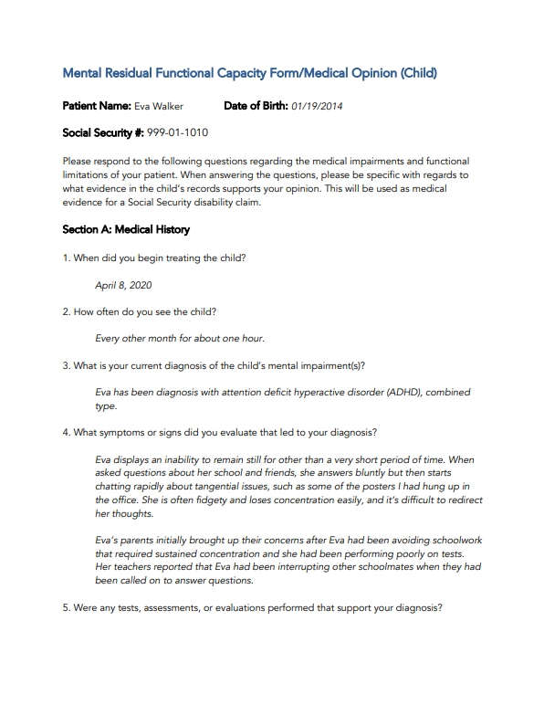 For your child to have their best shot at getting SSI benefits, it's very beneficial to have a medical source statement written by your child's pediatrician, family care provider, or mental health specialist. You can click on the thumbnail below to see a sample of a useful doctor's statement for a child with ADHD.